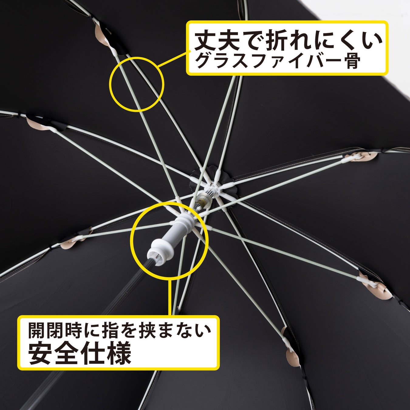 2. 傘の開閉時に指を挟まない安全ろくろ設計