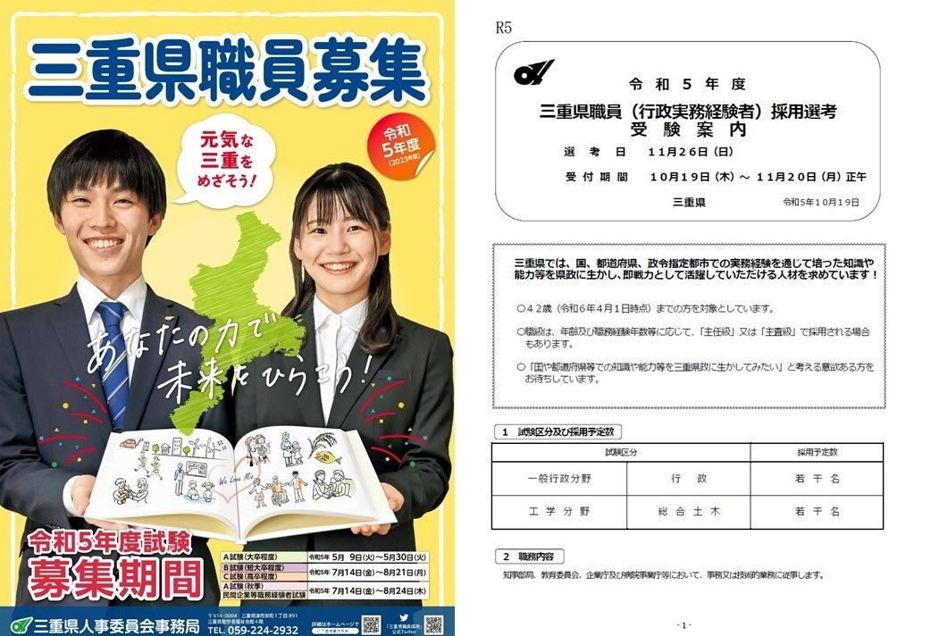 【三重県職員募集】行政実務経験者採用選考の受験申込み受付中!