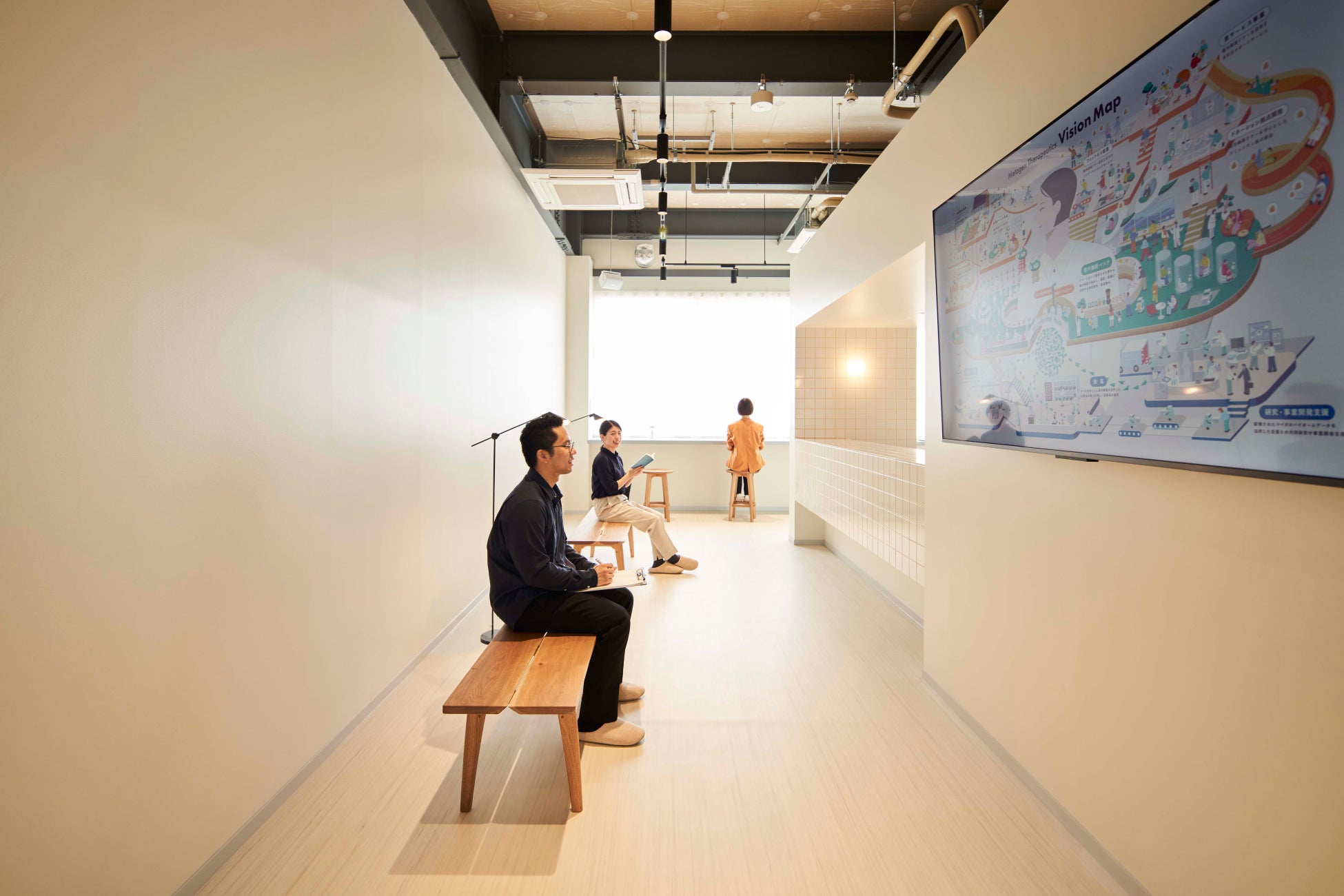 つるおか献便ルームでは、“通いたくなるトイレ“をコンセプトとし、「腸内細菌ドナー」が定期的に献便を行っていただけるような空間づくりを行いました。施設内には、3つの献便専用トイレに加え、休憩スペースを設けています。