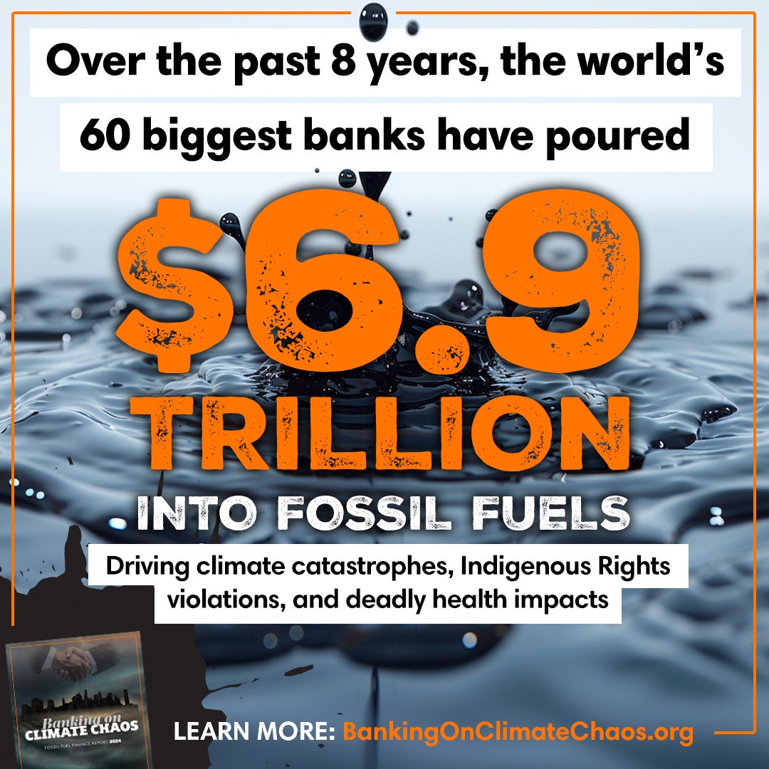 世界の主要60行は合計で約6.9兆米ドルを化石燃料に資金提供し、ほぼ半分の約3.3兆ドルが化石燃料事業を拡大する企業に提供された。