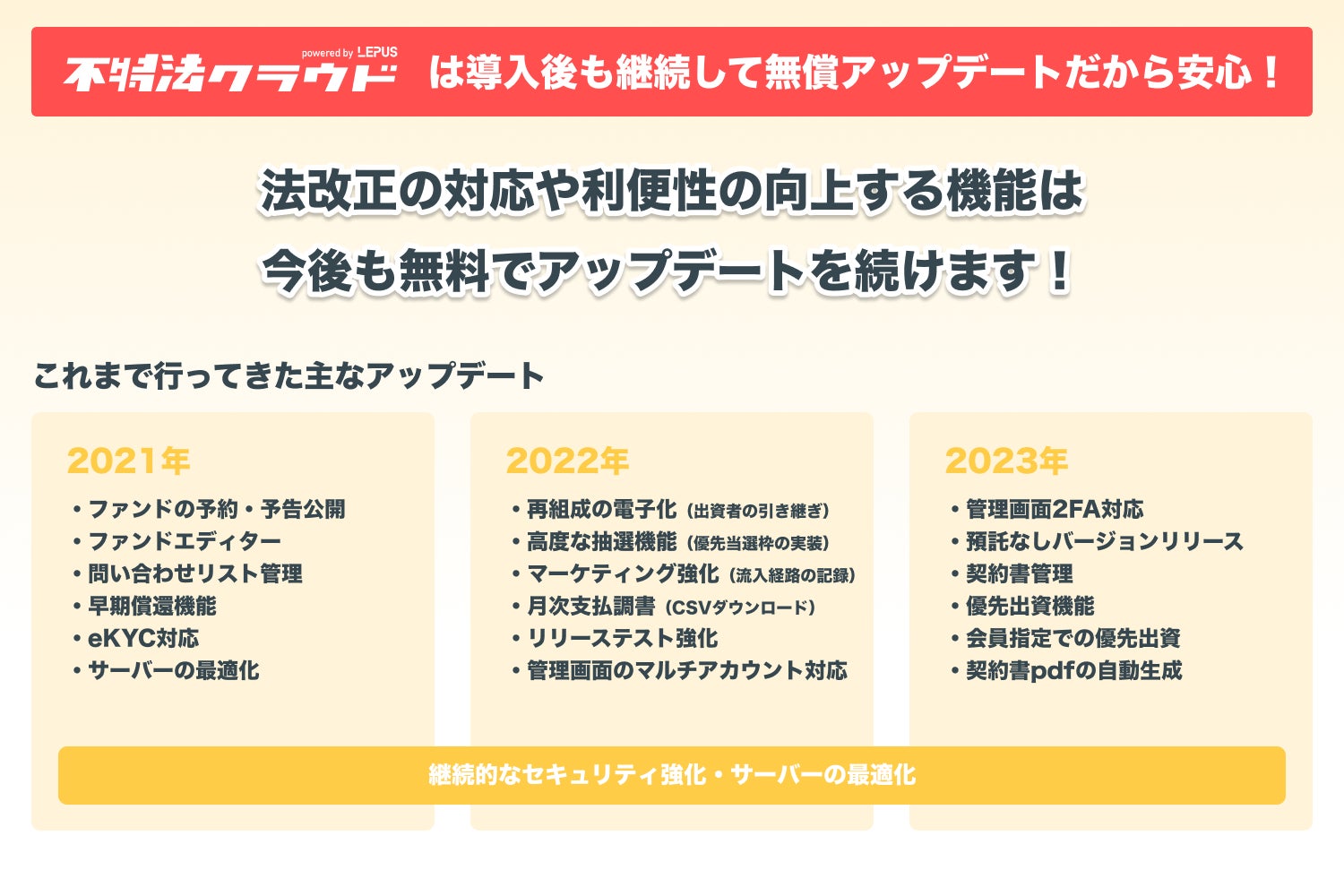 必要な機能は無償アップデート、追加の予算に振り回されません
