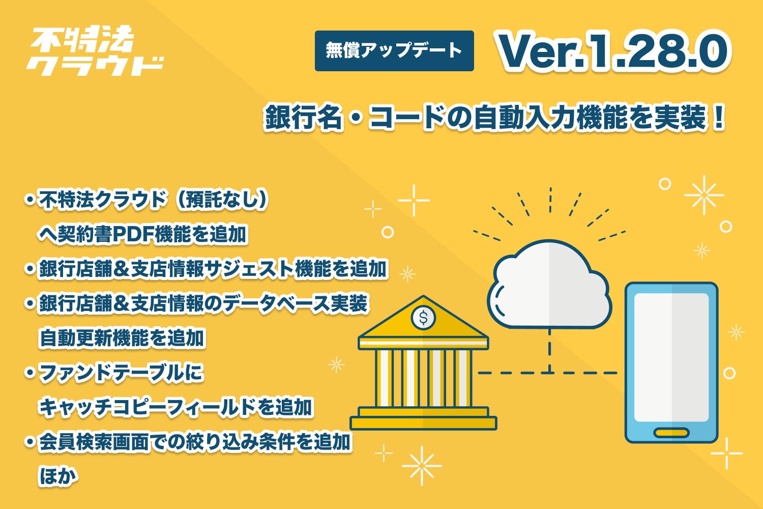 金融機関データベースを実装し銀行名・金融機関コードの自動入力機能を実装。不動産投資型クラウドファンディングシステム「不特法クラウドver1.28」がリリース
