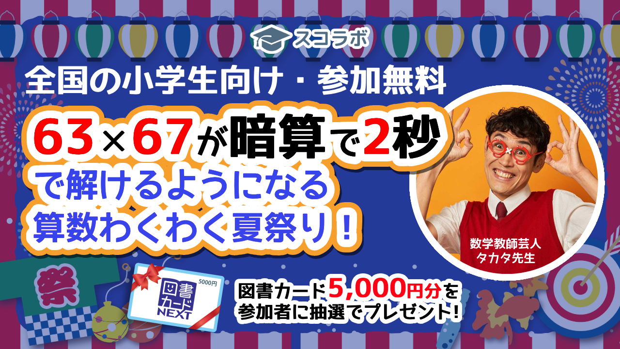 【63×67が暗算で2秒】参加無料の小学生向け算数オンライン夏祭りを、タカタ先生とスコラボが8/6(日)の夜に開催