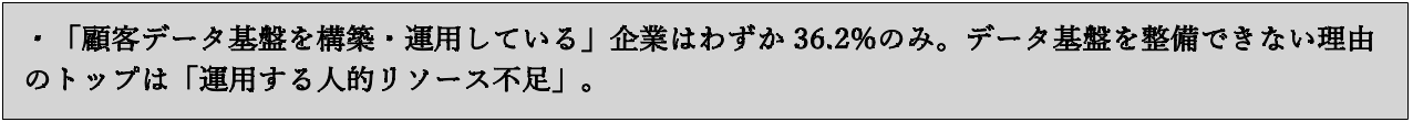 -企業の顧客データの活用に関する調査 – 課題は人的リソース不足!?顧客データ基盤を構築・運用している企業はわずか36.2%と判明