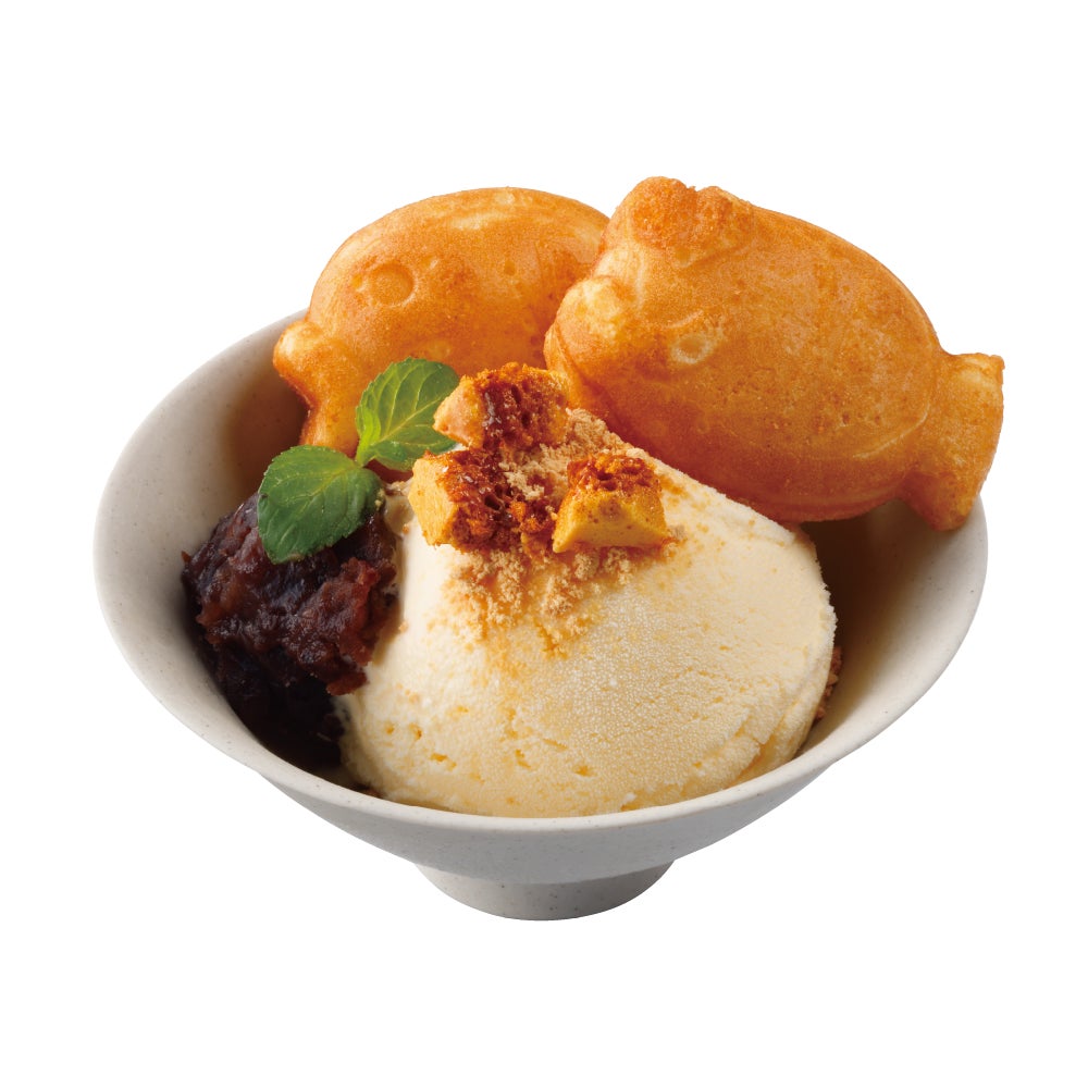 甘いバニラアイスクリームにかわいいミニプンオパンやあんこ、タルゴナフレークなどをトッピングしたK-デザート(770円 税込)