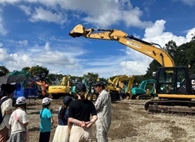 レンタルのニッケンクイズでは、社名の由来や建設機械の知識をこどもたちに質問しました。工場・ヤード内見学では、20mクラスの高所作業車、4.9tクローラクレーン、0.7㎥クラスの大型ユンボの見学を主に行いました。こどもたちからは「この機械で信号とか電柱を直せるのか?」という質問や「ユンボが恐竜みたい」など、こどもならではの自由な感想を聞くことができました。また、4.9tクレーンのクローラーが道路を傷つけないよう、ゴムの素材が採用されている事に驚くなど、日常ではできない体験を提供いたしました。