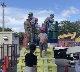 高所作業車の搭乗体験では、ヘルメットと安全帯を身に付けていただき、指導員の同乗の下、地上から12mまでの上昇を体験しました。こどもたちからは「眺めが良かった!」「もう一度乗りたい!」など一番の盛り上がりを見せました。