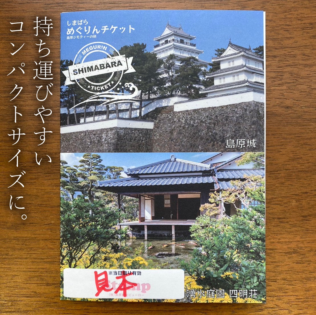 島原観光の必須アイテム「しまばらめぐりんチケット」、島原がまるわかり!対象施設・店舗でチケットを見せるだけで様々な特典がうけられます。島原へお越しの際は、ぜひご利用ください。
