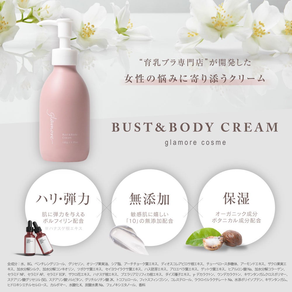 といろんな悩みを抱えている女性が多くいます。「バスト&ボディクリーム」は、ライフステージが進むにつれて変化していく女性たちの体形の悩みに寄り添う「グラモア」が、よりポジティブな気持ちを持っていただきたいと開発したコスメです。