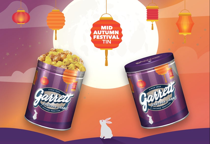 また、新デザイン缶の『ミッド・オータム缶』は収穫の秋をお祝いして、お月見をする可愛いウサギ達や満月に照らされた夜空に浮かぶランタンが描かれ、秋の静けさを感じさせる落ち着いたデザインになっています。秋の夜長、ポップコーンを片手に心地よい風に吹かれてお月見はいかがですか?