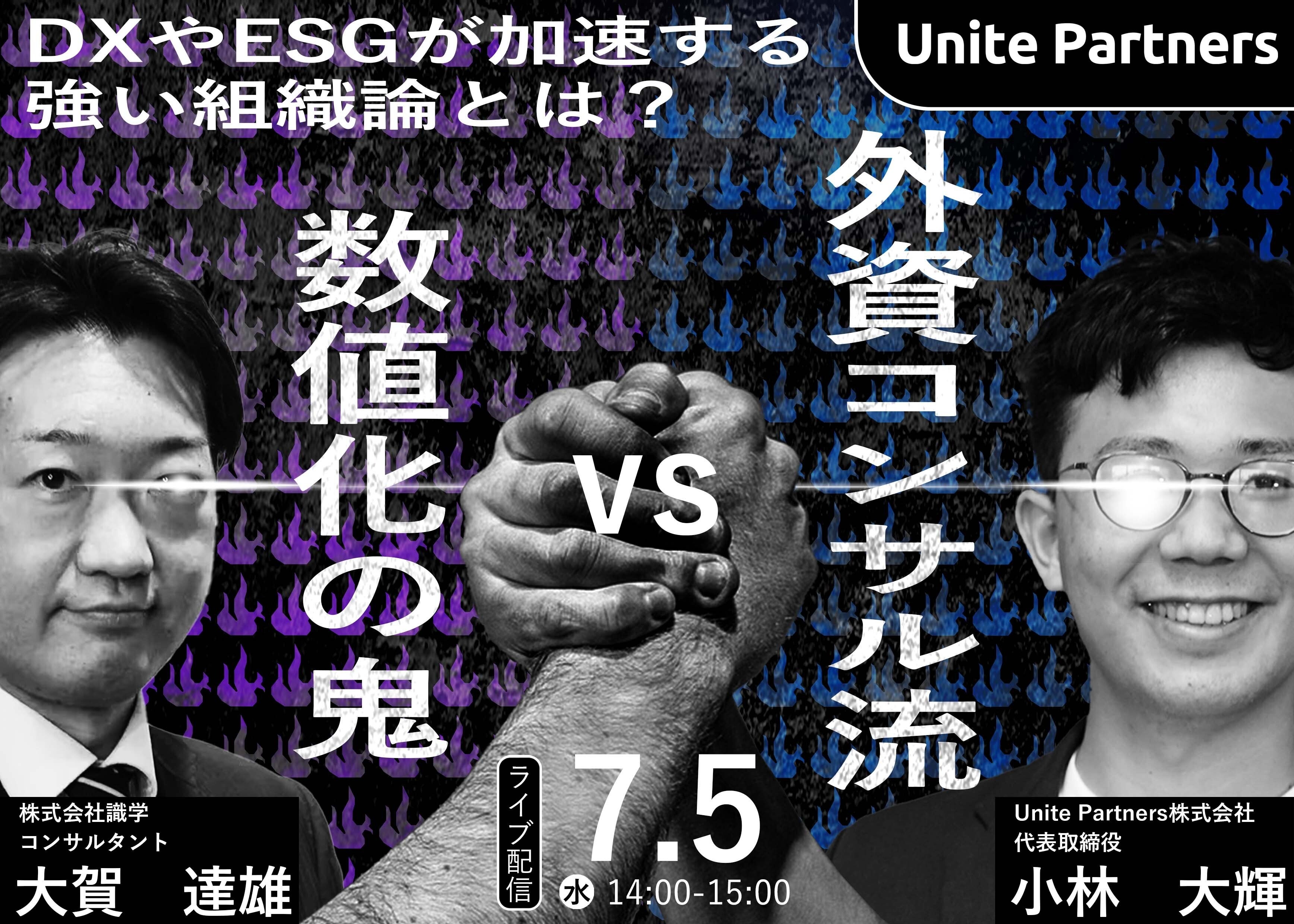 企業の変革パートナーを目指すブティック型コンサルティングファームのUnite Partners株式会社(本社:東京都、代表取締役:小林大輝)は、2023年7月5日(水)に、「数値化の鬼VS外資コンサル流 〜DXやESGが加速する強い組織論とは〜」と題して大企業の経営幹部の方向けのセミナーを開催します。