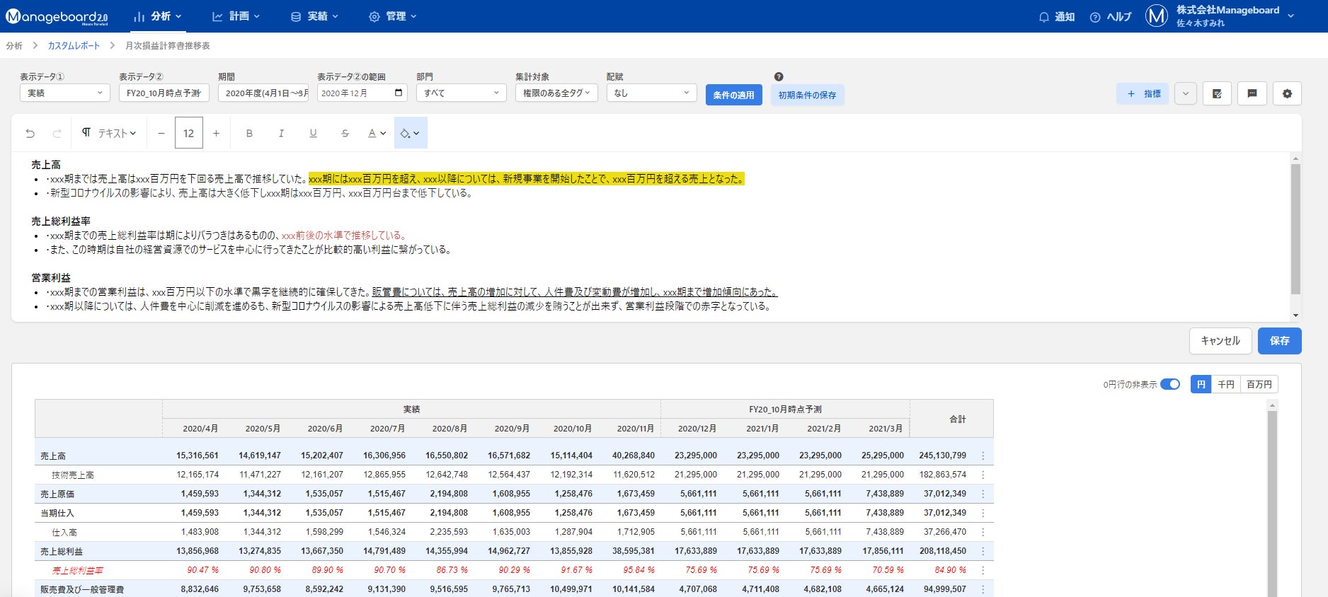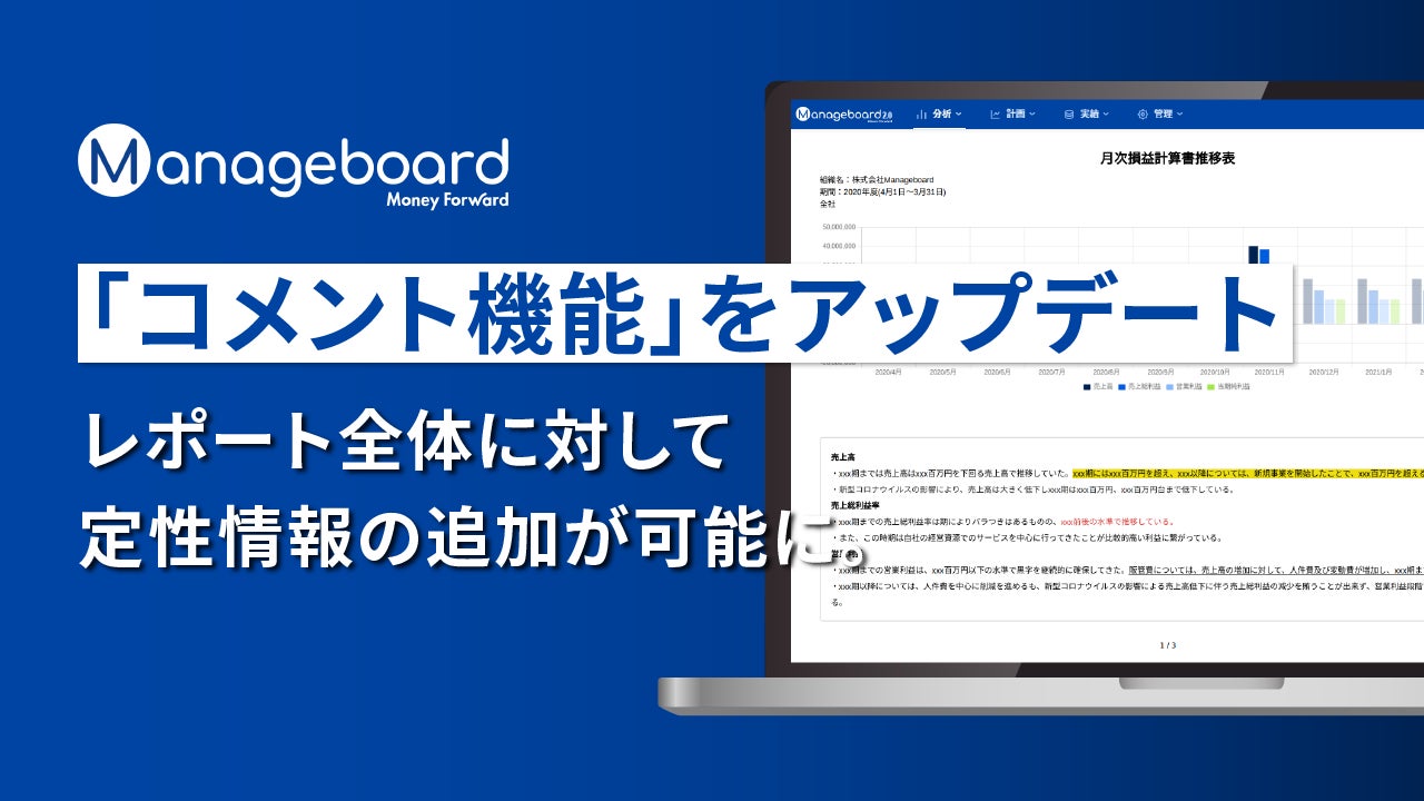 管理会計プラットフォーム 『Manageboard』、レポートに対して定性情報を追加できるコメント機能をアップデート
