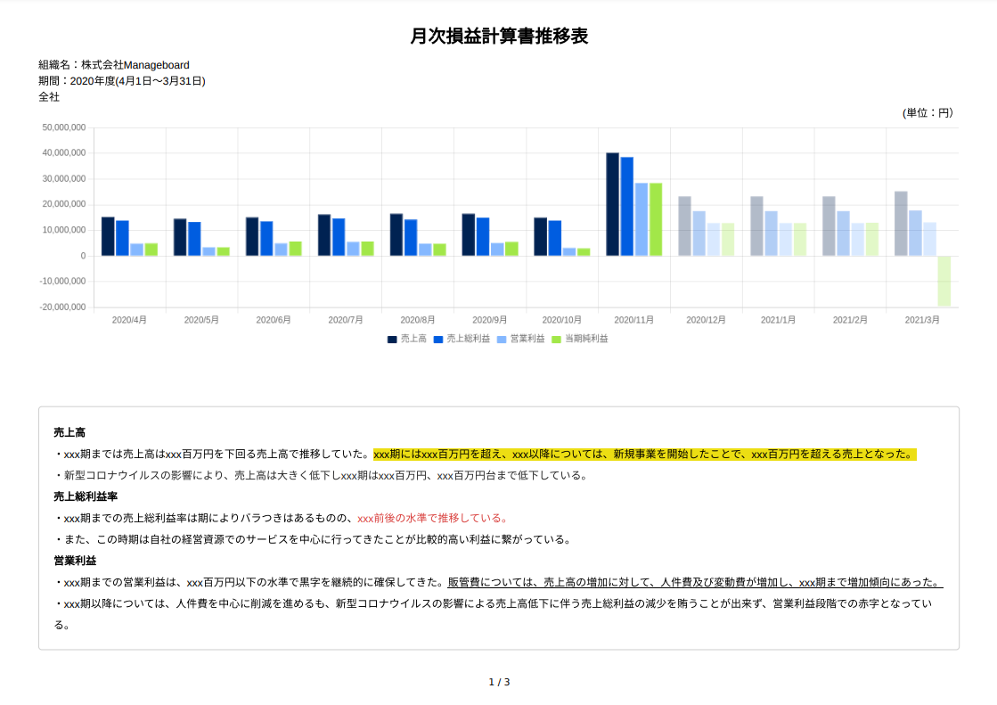 (※1)予実管理表など経営会議で使える帳票やレポート