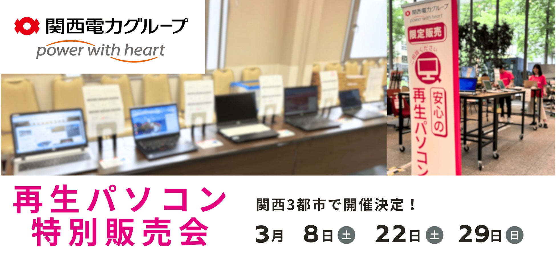 【3月 大阪3都市で開催】関西電力グループPC next の再生パソコン特別販売会 <会場限定の購入特典あり>