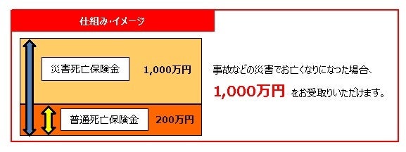 普通死亡保険金:200万円、災害死亡保険金:1,000万円