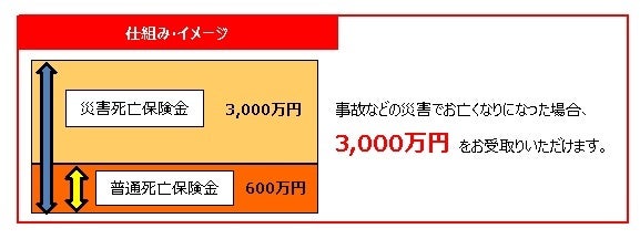 普通死亡保険金:600万円、災害死亡保険金:3,000万円