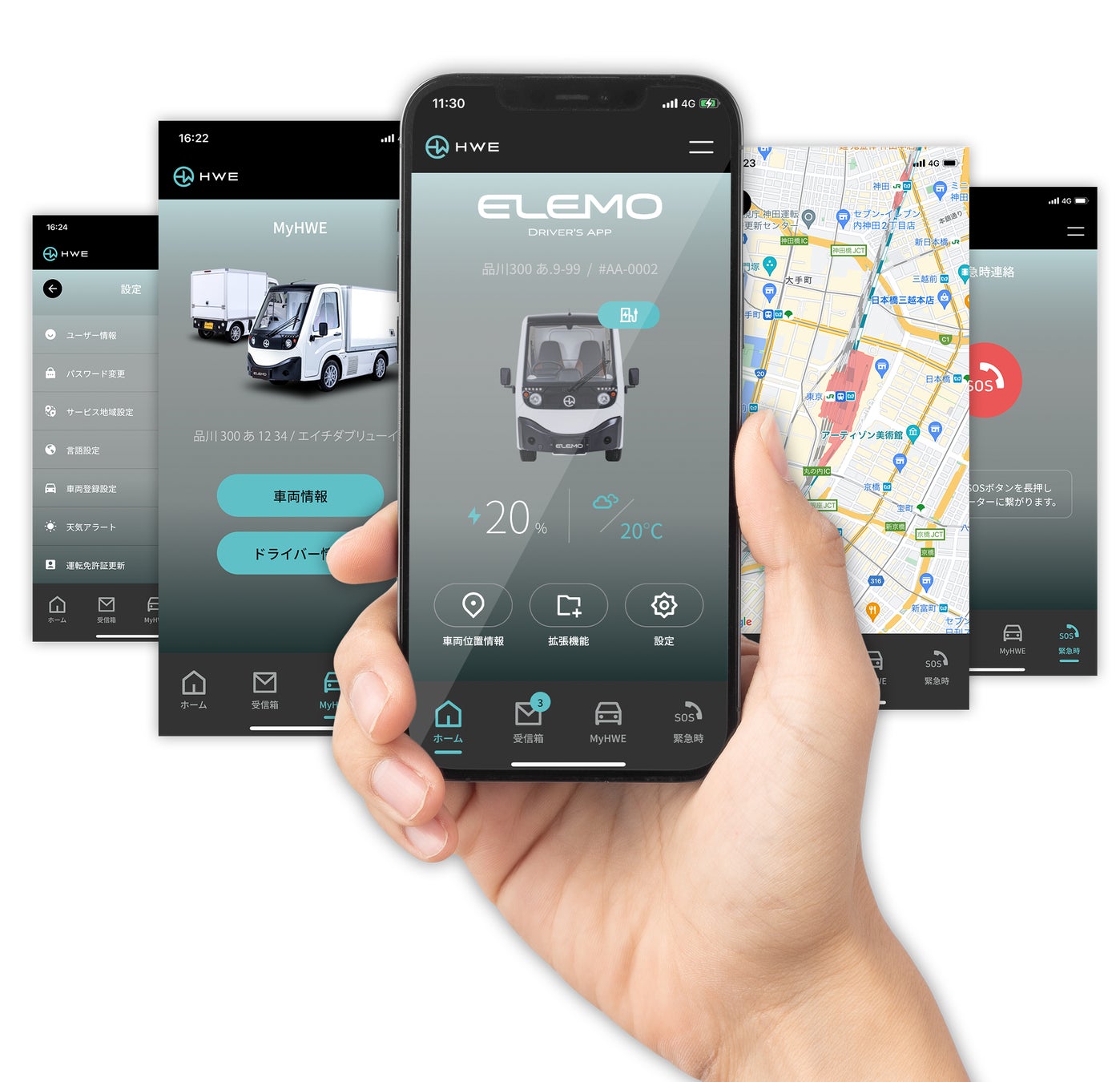 「MyHWE」は、独自のプラットフォームサービスによる情報基盤を持つモバイルアプリケーションです。本アプリケーションを通じ、モバイルからEVのバッテリー残量・充電のステータス・車両の現在地の確認が可能となります。また、モバイルから車両を遠隔操作する認証基盤を構築いたしました。