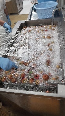 信州大学工学部の生物化学研究室では、普段より酵素の構造と機能についての研究をしております。この応用として、酵素を用いた食品加工も展開しています。今回の開発はその技術を、果物の未利用部分の再利用に適応するものです。本技術開発は、工学部で行っていた食品の加工に携わる技術者を育成するプログラムである「ながのブランド郷土食」において研究されたものであり、JA長野県地域開発機構と共同で特許を取得しております。果物に含まれるポリフェノールほかの機能性物質を効率よく、分解を極力抑えた方法で作れる技術であり、最近の環境に優しい技術に適合するものです。この成果が長野県にも認められ、循環型社会形成の推進に関する県からの表彰を頂いています(環第24174号)。