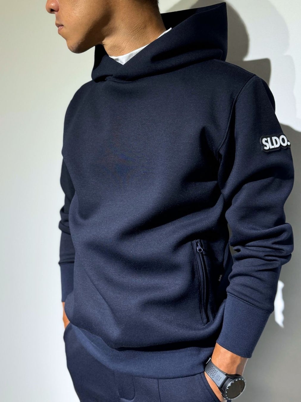 人気のライトダブルニットシリーズからフーディーが初登場。