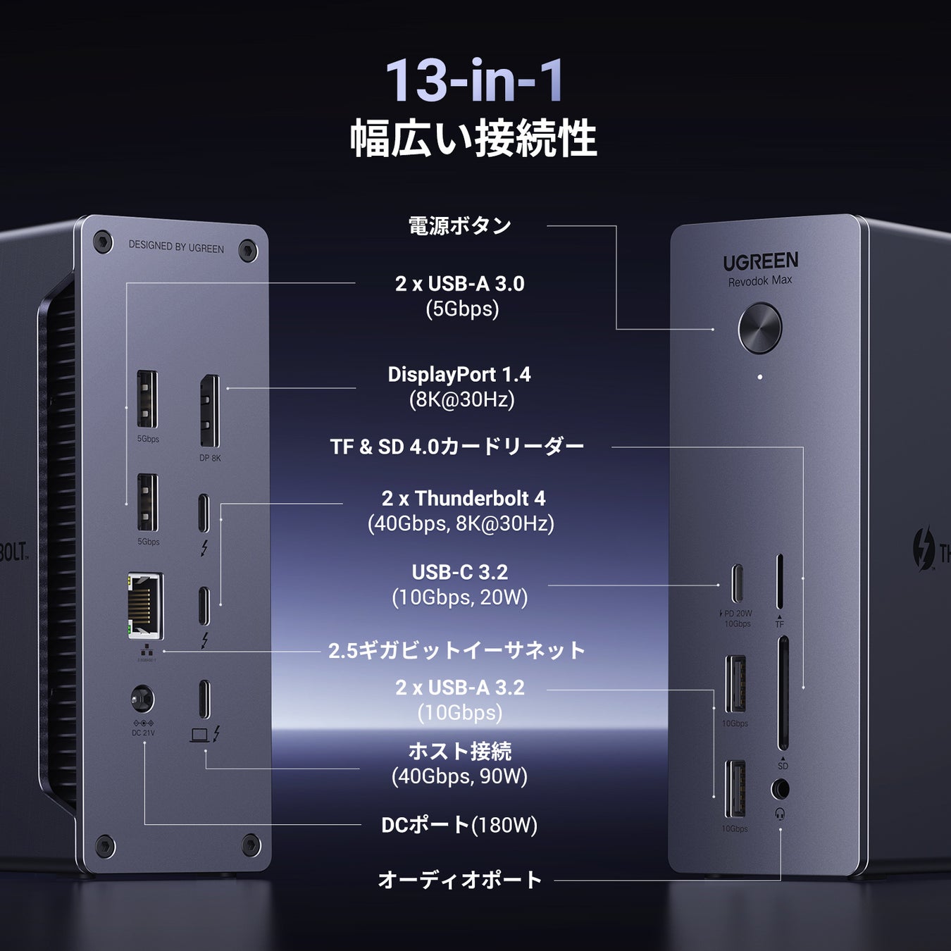 UGREEN(本社:中国・深圳、代表取締役:何夢新)は本日、Thunderbolt 4対応の13-in-1ドッキングステーション「Revodok Max 213」を発売します。