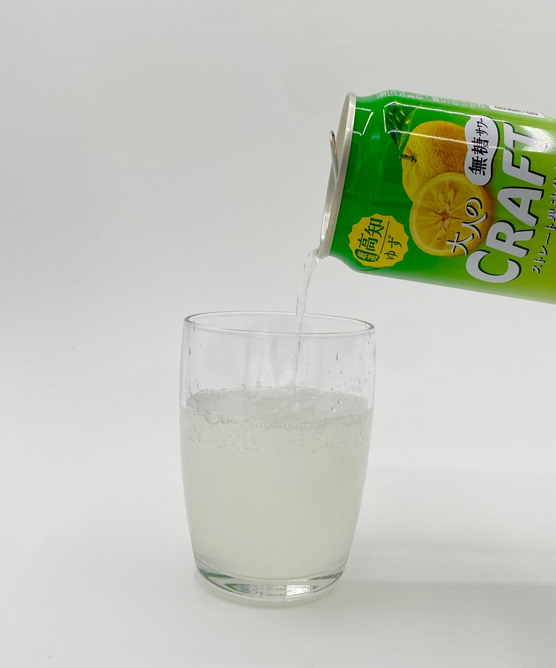 本商品は、高知県産の“本柚子”を使用した、国産果実ストレート果汁仕立てのクラフト無糖サワーです。甘味料・糖類を一切加えず、まるで果実をそのまま搾ってお酒に加えたかのような、ドライかつジューシーな味わいを実現しました。
