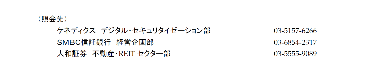 ※本書面は、ケネディクス、SMBC信託銀行及び大和証券の3社において、本邦初の私設取引システムにおいて取り扱われる不動産セキュリティ・トークンに関連した協業の内容について、一般にお知らせすることを目的としたものであり、日本国内外を問わず個別の金融商品等への投資勧誘を目的とするものではありません。