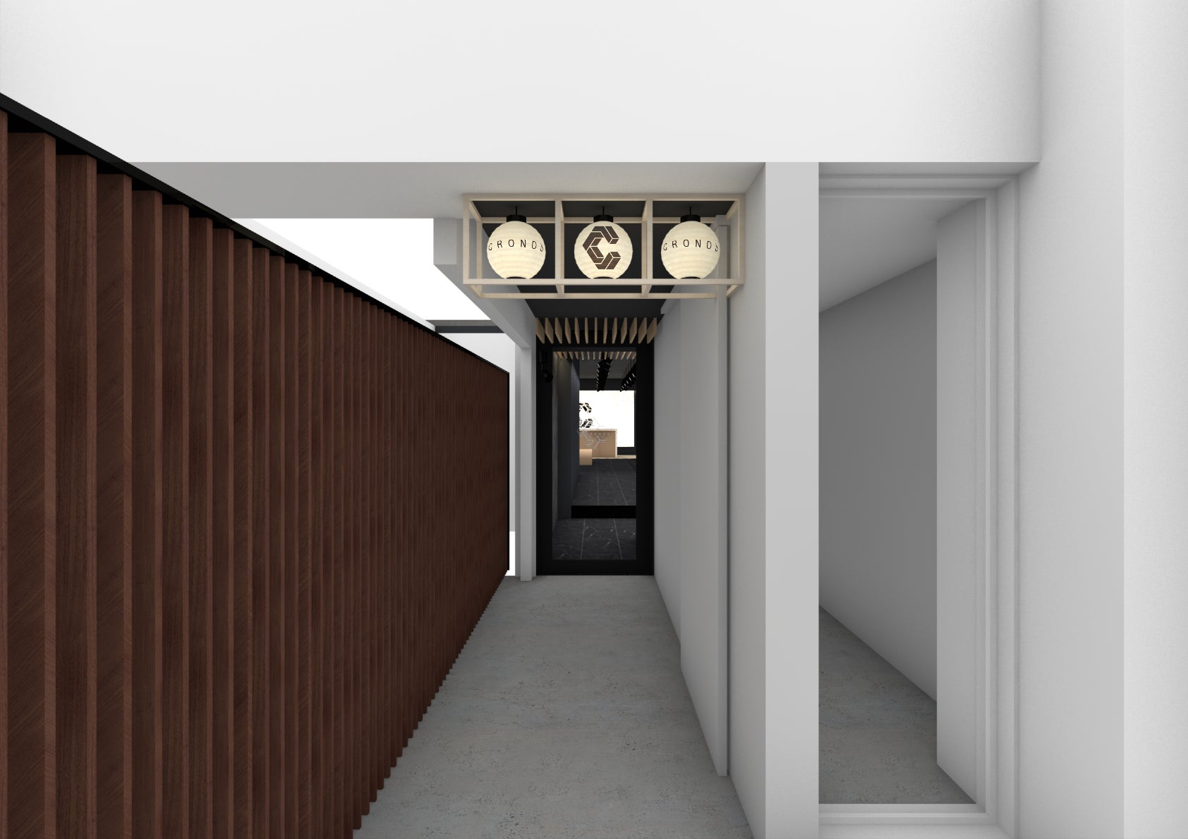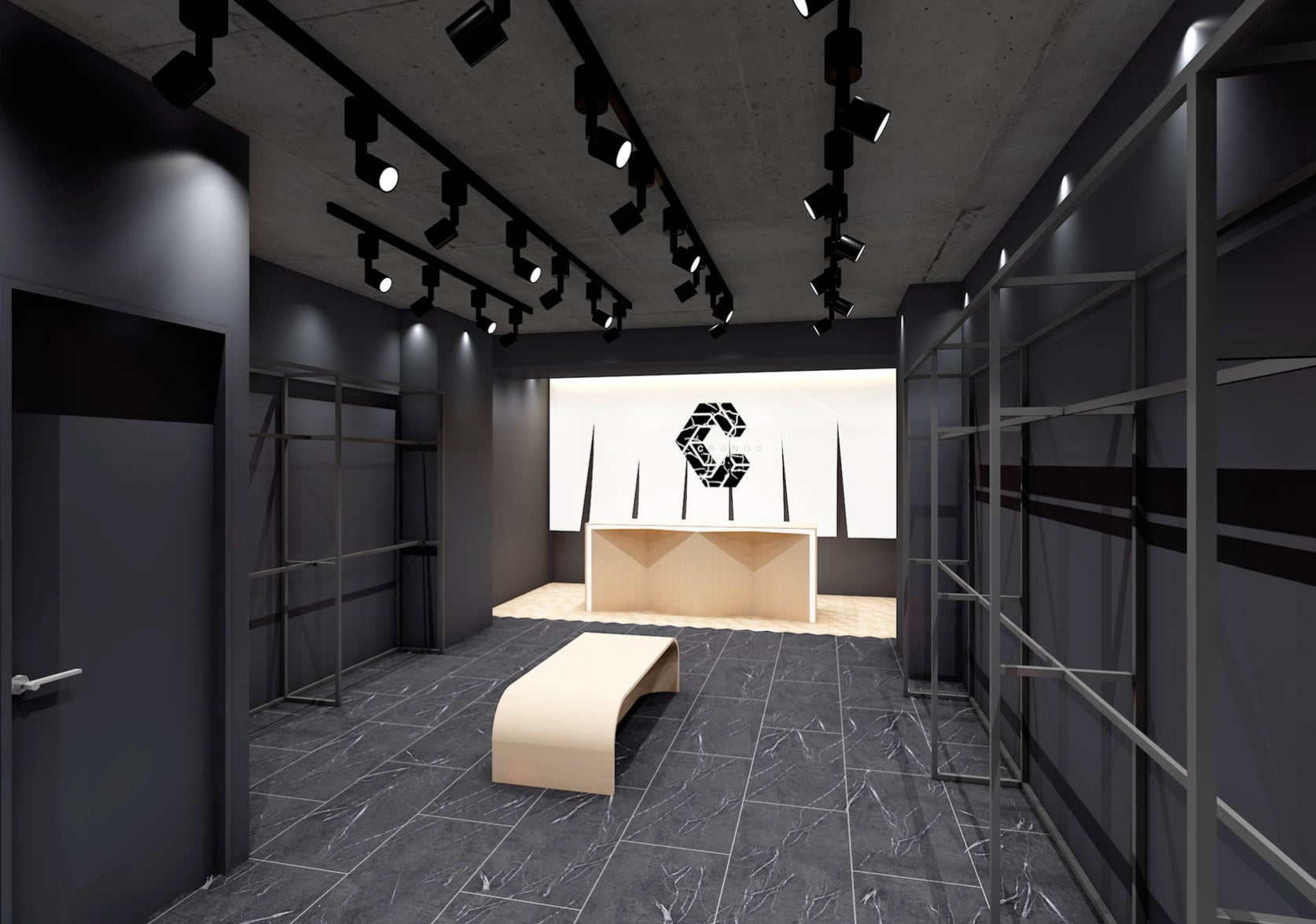 “日本をはじめ世界中の人たちが立ち寄ってみたくなる店舗”をテーマにした本店舗は、京都で親しまれている古き良き文化や伝統産業を取り入れたいという想いから、木が持つ本来の美しさを活かした白い肌の木材を採用した“天井”や、木枠で囲った“提灯”など店外から入口まで続く装飾をはじめ、店内のシンボルとして巨大な“暖簾”をディスプレイ。CRONOSのブランドカラーであるモノトーンを基調とした配色に「和」の要素を取り入れることで、スタイリッシュな現代風デザインにオールド・ファッションのスタイルを融合させた内装に仕上げました。
