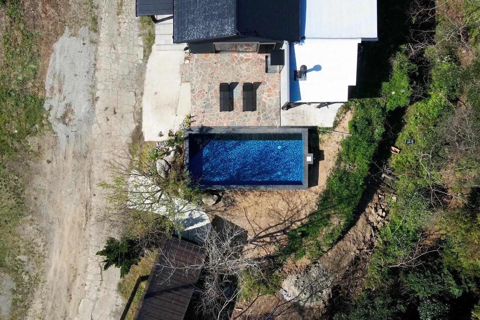 本施設は、宗像市で初めて※「全てのペットと泊まれる、天然水が湧き出る一棟貸し宿」として、森に囲まれた1091㎡もの広大な敷地にプール、サウナ、暖炉、BBQテラス、バスケットコートなどを備えたプライベート空間で、心と体の深い癒しをご提供いたします。