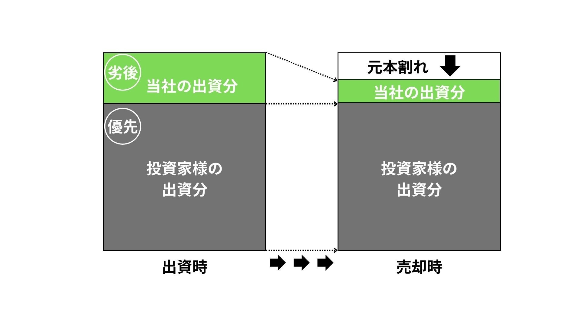 投資家様に安心して出資していただくために、本ファンドでは「優先劣後方式」を取り入れています。