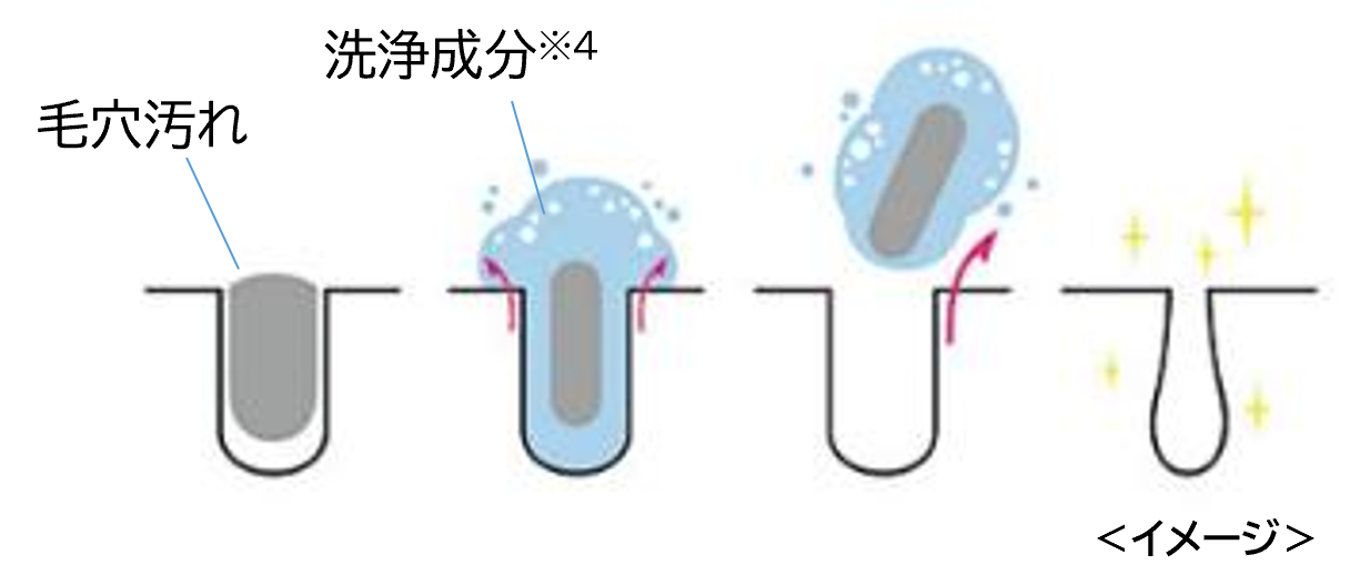 *炭酸水素Na(pH 調整剤) 由来のもの ※1 古い角質 ※2乾燥によって目立つ毛穴 ※3 アスコルビン酸(保湿成分) ※4 ラウロイルグルタミン酸Na