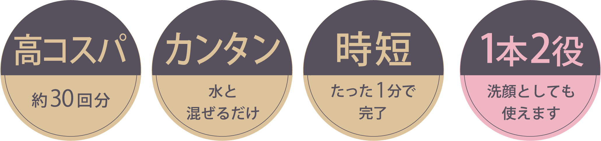 これまでの炭酸パックのイメージを覆す!? 1分で完結!手間いらず!水と混ぜるだけ。