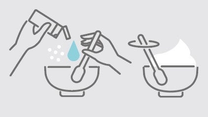 お手持ちの容器とスパチュラで混ぜるとふんわりパックが出来ます。