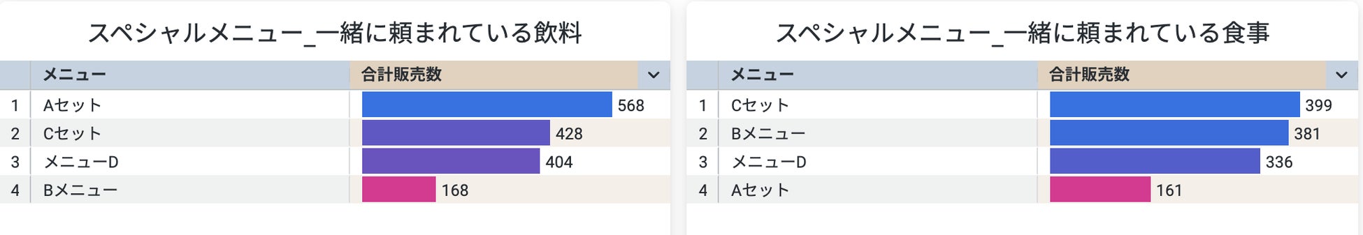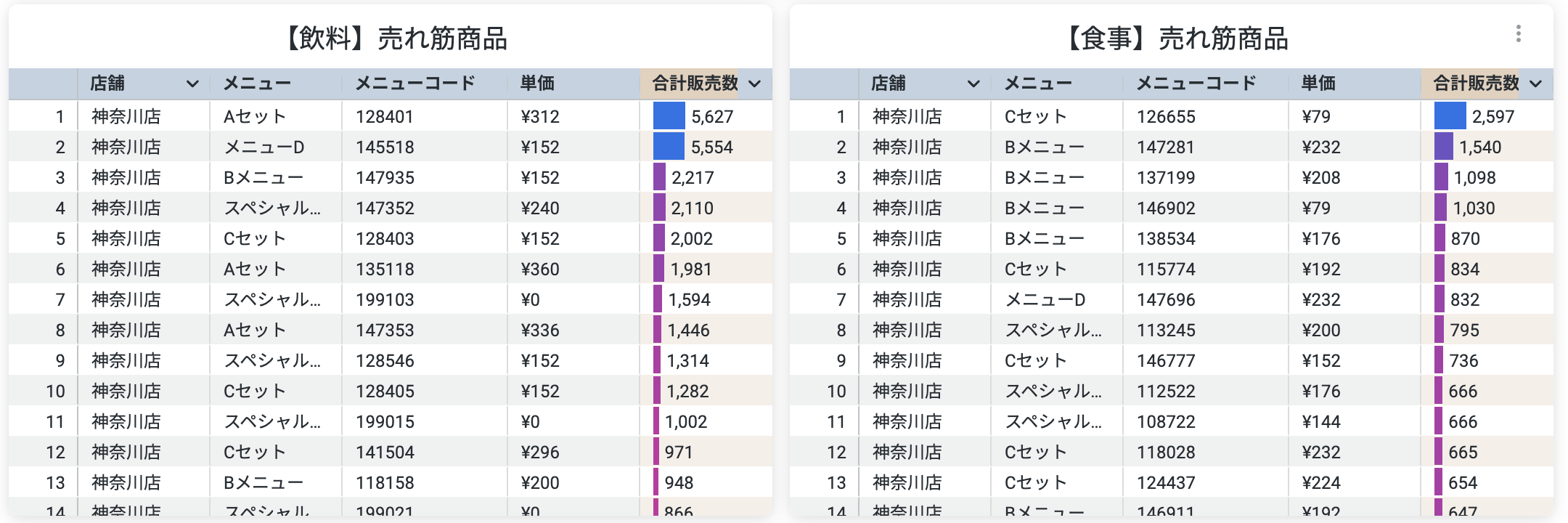 売れ筋商品を見ることで、各店舗の特性を知る手がかりや、新商品開発の洞察として活用可能になります。