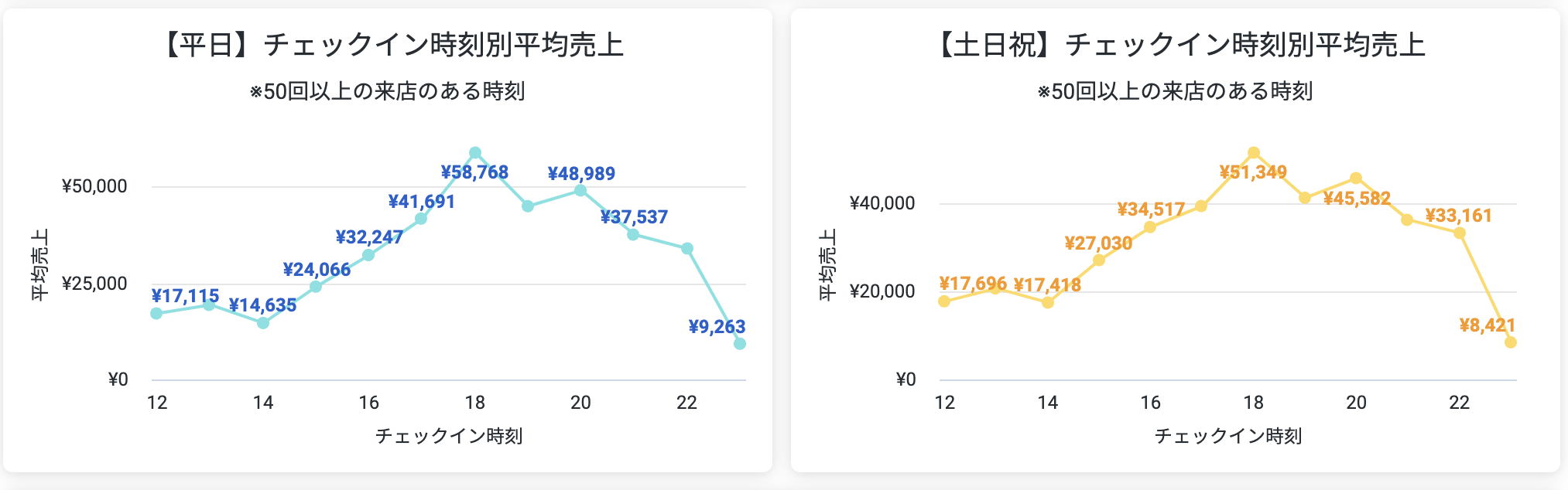 例えば「ランチ時間帯が強く、昼過ぎも持続的に強い店舗」であれば、通し営業を検討するといった洞察につながります。