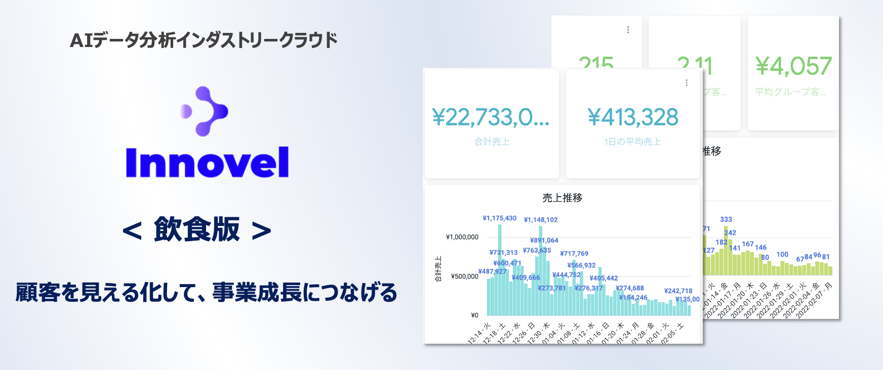 飲食POSデータ分析サービスはPOSデータだけで店舗や顧客特性を見える化。「売れ筋商品と一緒に注文される商品」や「高単価客がよく注文する商品」などがわかり、商品開発や座席配置の最適化を実現します。