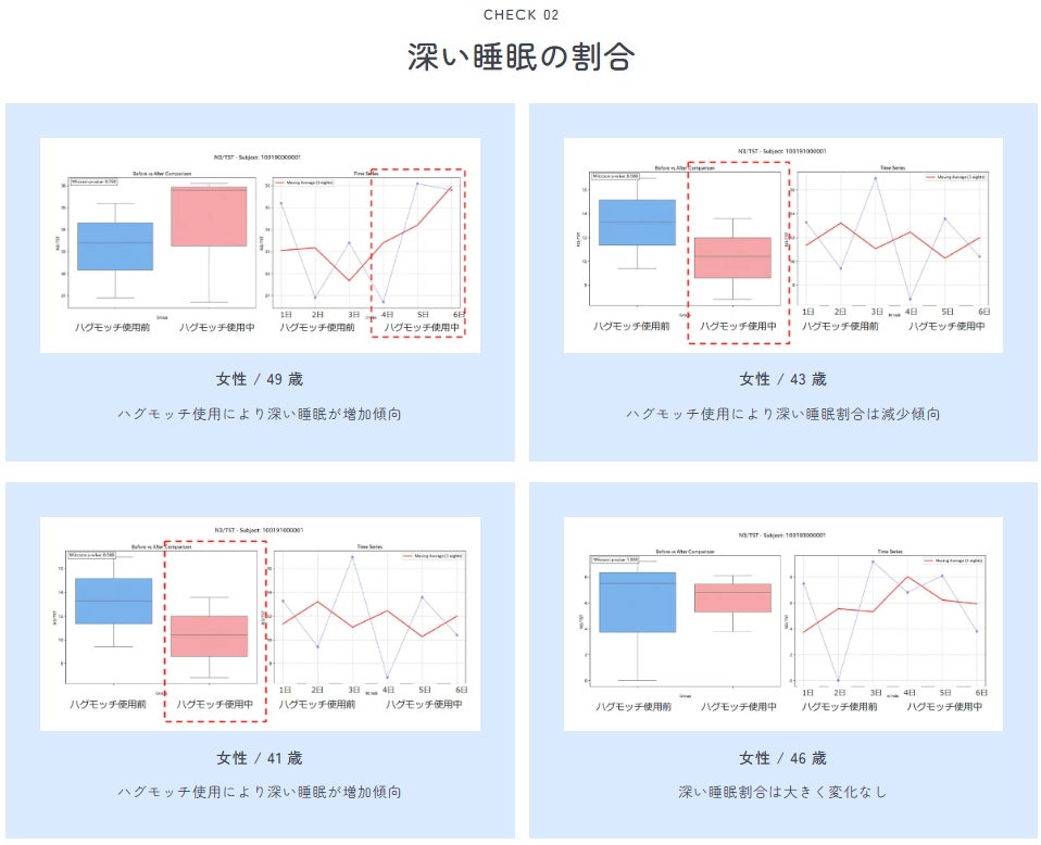 [脳波で実感] ハグモッチを睡眠中に活用することで、浅い眠りの時間が減少した実験データを確認。
