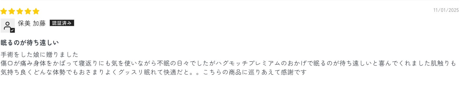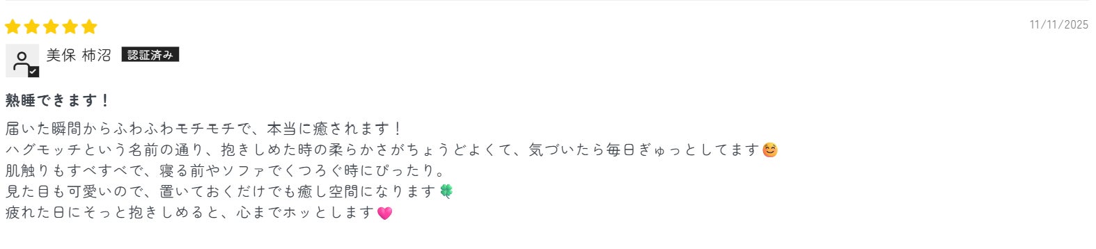 各販売サイトにある全てレビュー数は20,000件を超える(2025/12/2時点)。そのなかで弊社の想定を超える睡眠の質が改善された内容のレビューが多数書き込まれるため、脳波による実験を行うことでハグモッチを利用する方にどのような影響が出ているのかを検証するに至った。