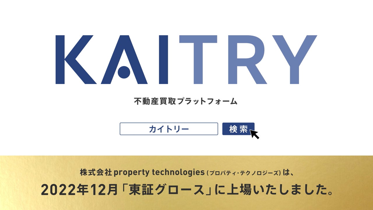 株式会社 property technologies(本社:東京都渋谷区、代表取締役社長:濱中 雄大、証券コード:5527、以下当社)は、2023年1月1日(日)からiBuyerプラットフォーム『KAITRY(カイトリー)』(https://kaitry.com/)のテレビCMを首都圏中心に放映します。