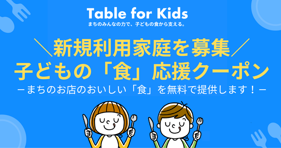 首都圏の子どもや若者を対象とした社会教育や社会福祉に取り組む認定特定非営利活動法人夢職人(本社:東京都江東区、理事長:岩切準、以下:夢職人)は、株式会社フィノバレー(本社:東京都港区、代表取締役社長:川田修平、以下:フィノバレー)と連携して行っている子どもの「食」応援クーポン事業(Table for Kids)の新規利用家庭の募集を2026年4月17日(金)より開始しました。