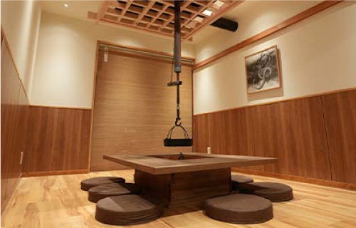 囲炉裏スペース:直火の温かさを囲むくつろぎの場。