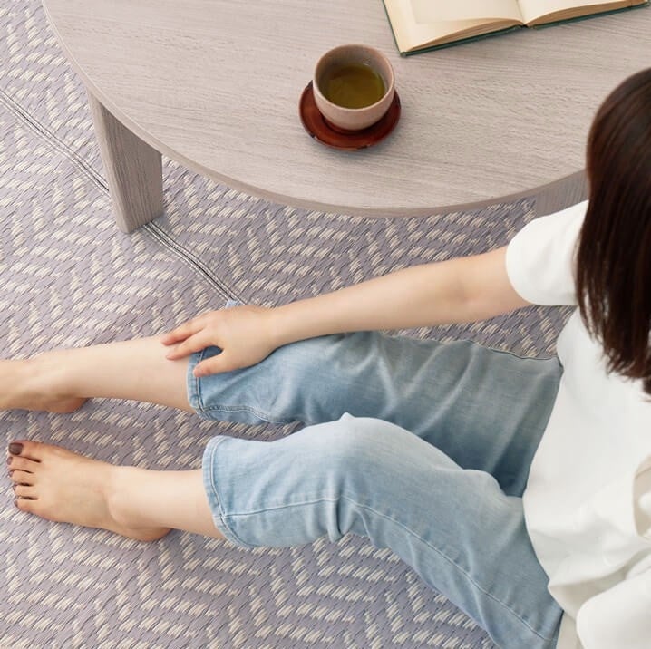 【和室のイメージを一新するヘリンボーン×パステルの上敷カーペット。もちろん洋室にも!】