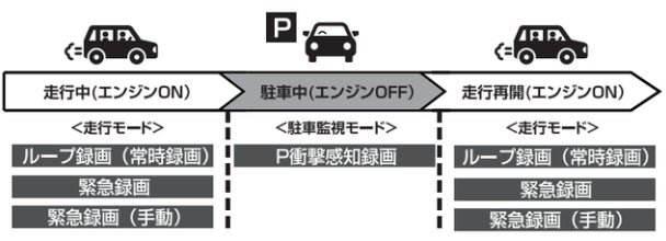 - 前後フルHD画質でナンバープレートもくっきり録画