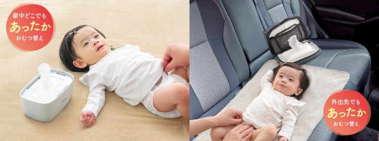 あったかおしりふきをパッと持ち運び︕赤ちゃんを待たせずおむつ替えできるおしりふきウォーマー。