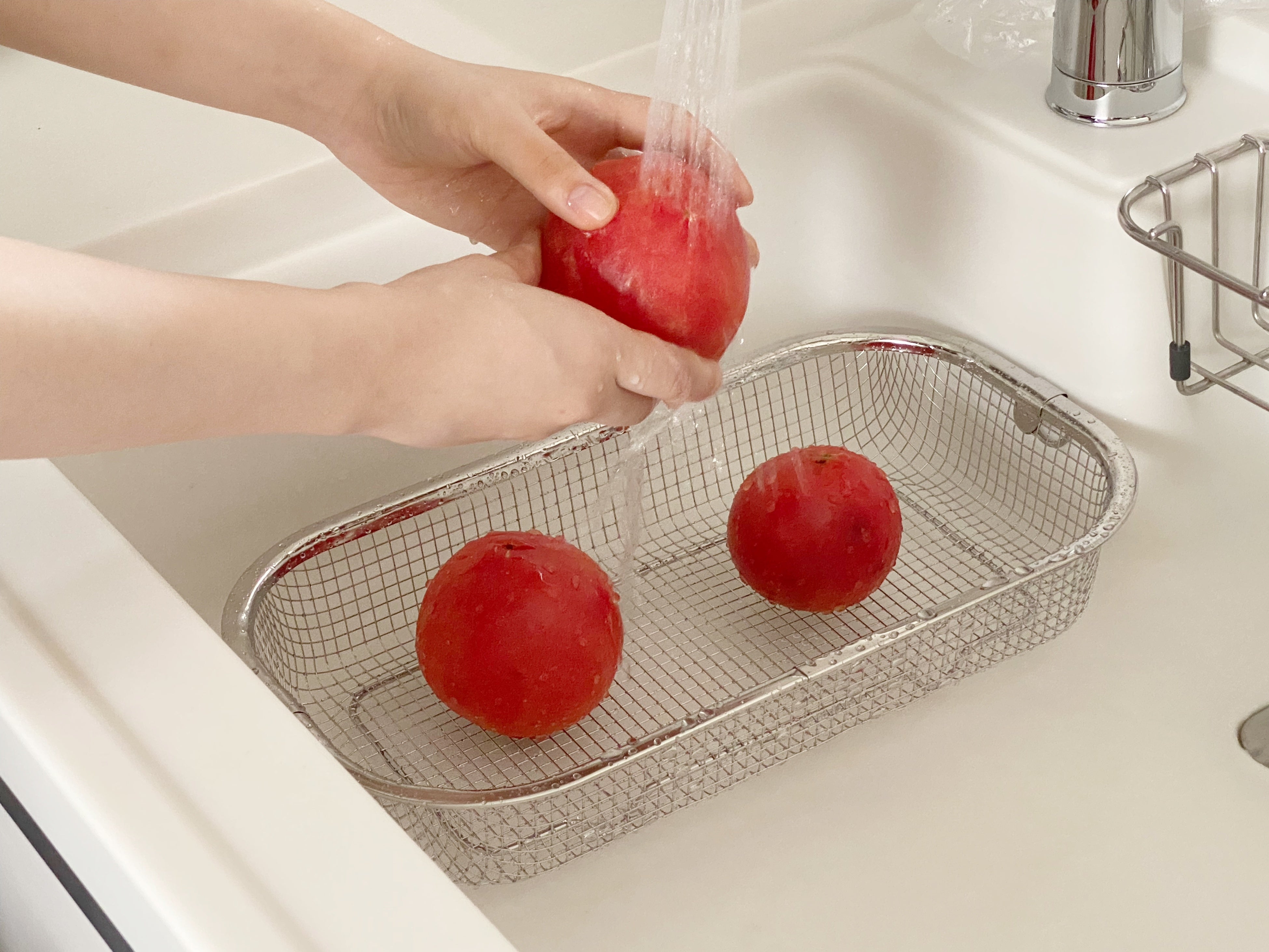 食器を洗うだけではなく、野菜を洗うのにも便利です。ほうれん草やキュウリなどの長物を水切りする際に使いやすい。