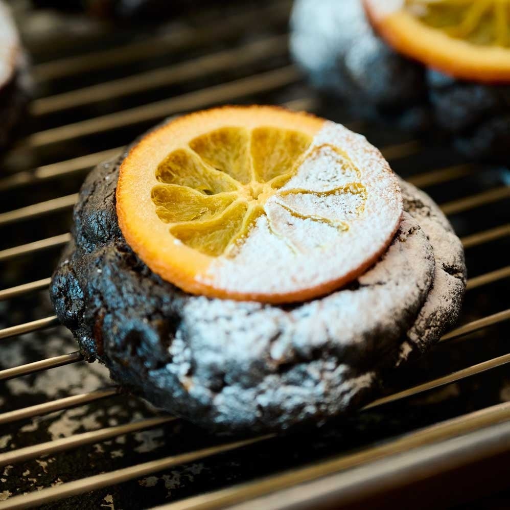 グランマニエリキュールでマリネした輪切りオレンジと、オレンジピールを生地に練り込んだ爽やかなビタークッキー。見た目の華やかさもあり、ギフトにおすすめです。