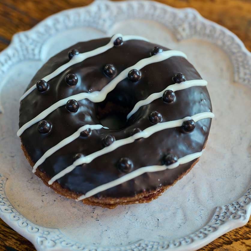 生クリームをたっぷり包んだハート型のドーナツに、濃厚なダークチョコレートをコーティング。さらに、アーモンドとカカオニブをトッピングして香ばしさと食感をプラスしました。