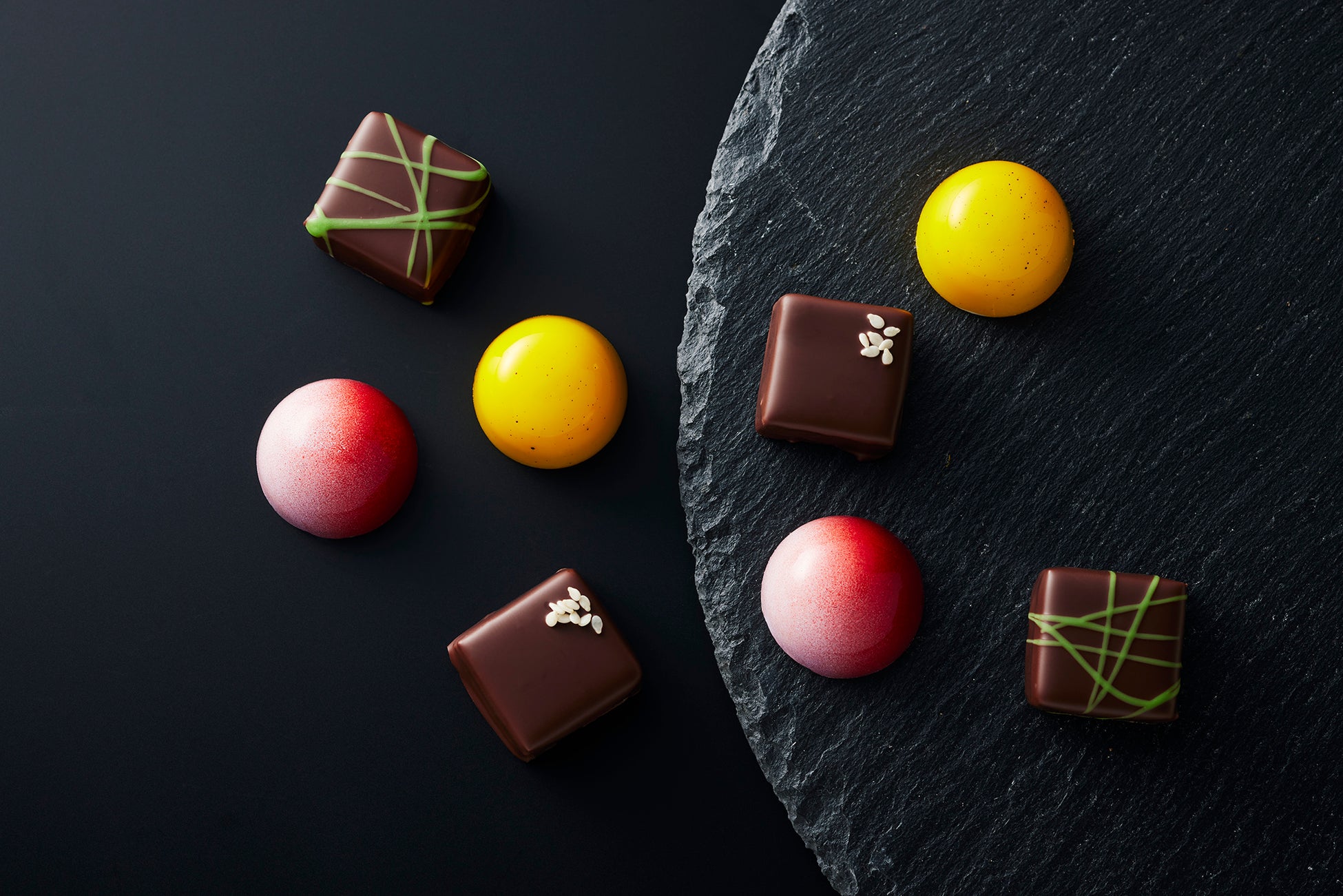 新作ボンボンショコラ「ジャポネ」は、数ある和の素材の中から「抹茶・柚子・桜・胡麻」の4種類を用意しました。ホワイトチョコの甘さの後にほろ苦い抹茶の風味を楽しめるショコラや爽やかな苺の酸味と奥深い桜の風味と香りを楽しめるショコラ、丁寧に煎った白胡麻をキャラメリゼしてペースト状にし、ミルクチョコと合わせたショコラなど、幅広い世代に味わっていただきたいショコラです。