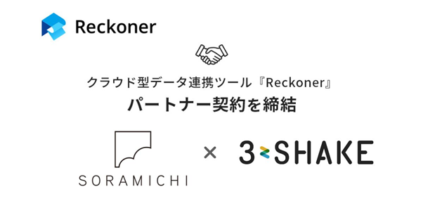 株式会社SORAMICHI(本社:東京都中央区、代表取締役社長:川本広二、以下SORAMICHI)は、このたび、株式会社スリーシェイク(本社:東京都新宿区、代表取締役社長:吉田拓真、以下スリーシェイク)が提供する、クラウド型データ連携ツール「Reckoner(レコナー)」とパートナー契約を締結したことをお知らせします。