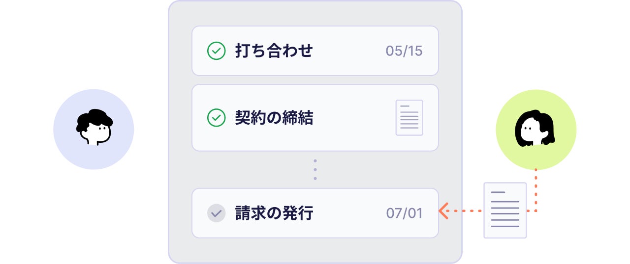 今回リリースした取引共有機能は、取引相手のメールアドレスを入力するだけで取引内容を簡単に共有できる機能です。共有後は、取引の概要や進捗状況、取引の開始日・終了日などを双方が編集できるようになります。