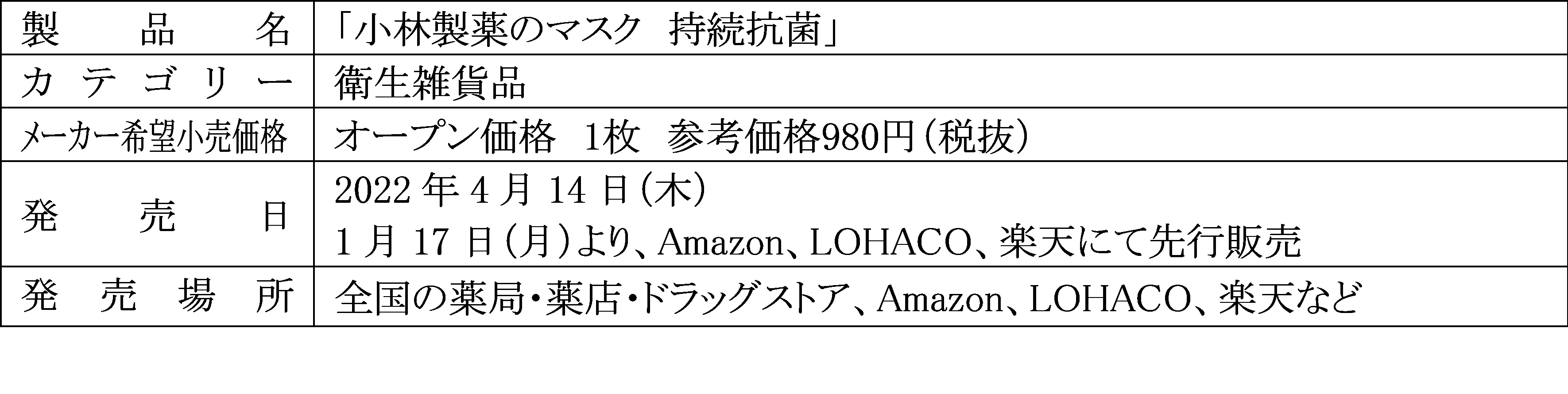 独自の『KOBA-GUARD(コバガード)』技術で30回洗っても抗菌が持続※1する布マスクが新登場!「小林製薬のマスク 持続抗菌」~2022年4月14日(木)に新発売~